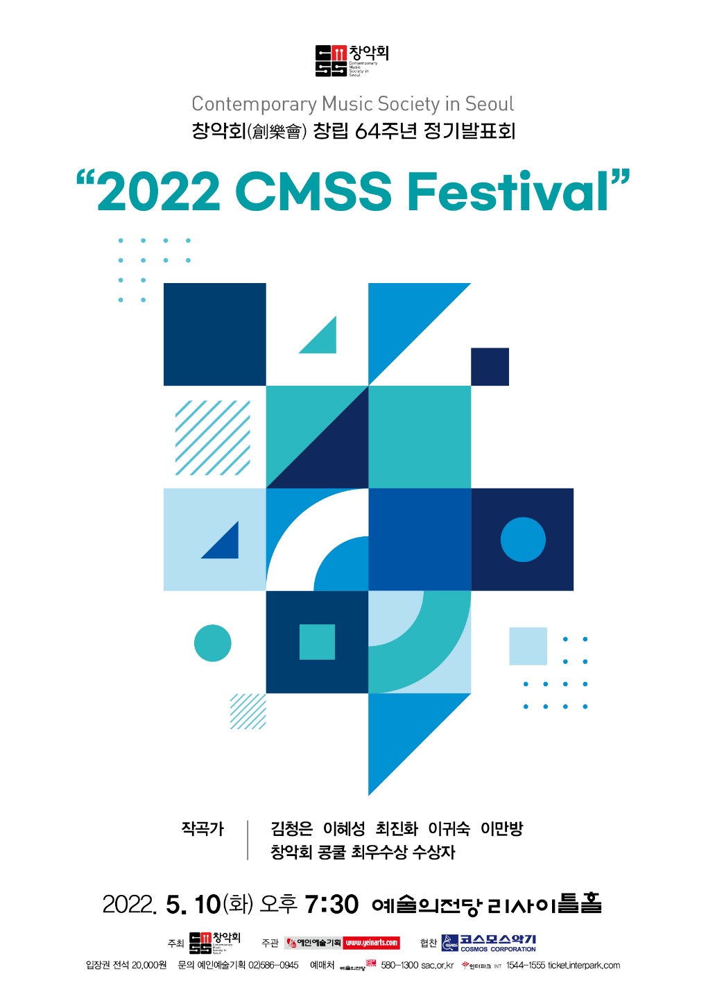 2022. 05. 10. 저녁 7:30 예술의전당 리사이틀홀 위로5 '그리움' 세계초연 페이지 정보 작성자 최고관리자 작성일22-04-25 15:13 관련링크 이전글 다음글 목록 본문 CMSS 2022 Festvial 이전글 다음글 목록